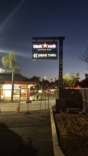 An illuminated sign is key to attracting customers in high traffic retail areas. Black Rock Coffee’s business depends on the number of cars that pass by. Pulling a high percentage of these travelers into the lot to buy coffee increases profitability.